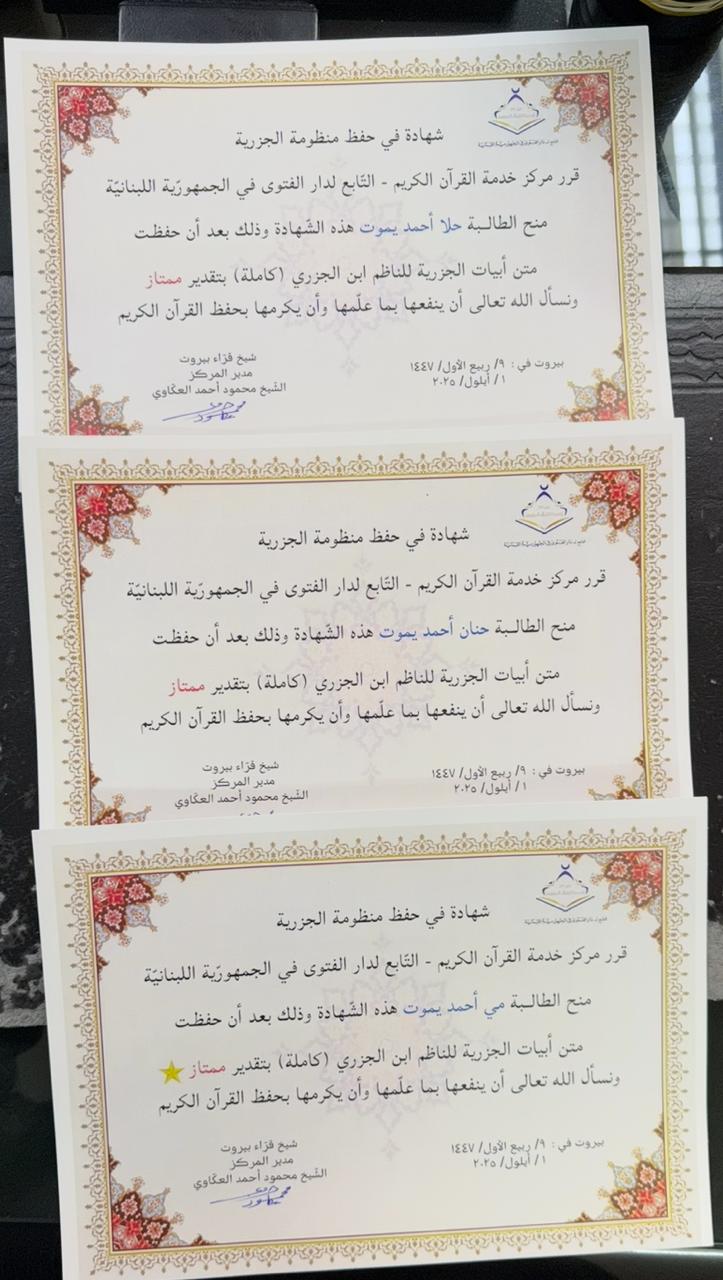 طلّاب مركز خدمة القرآن الكريم، وإجازة من أتمّوا جمع القراءات العشر ومنهم من